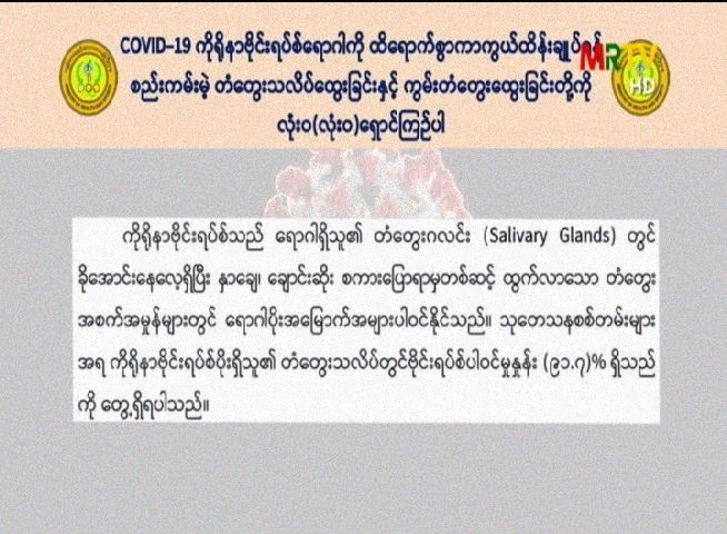 COVID-19 ကိုရိုနာဗိုင်းရပ်စ်ရောဂါကို ထိရောက်စွာကာကွယ်ထိန်းချုပ်ရန် စည်းကမ်းမဲ့ တံတွေးသလိပ်ထွေးခြင်းနှင့် ကွမ်းတံတွေးထွေးခြင်းတို့ကို လုံးဝ(လုံးဝ) ရှောင်ကြဉ်ပါ Tuesday, May 05, 2020 Tuesday, May 05, 2020