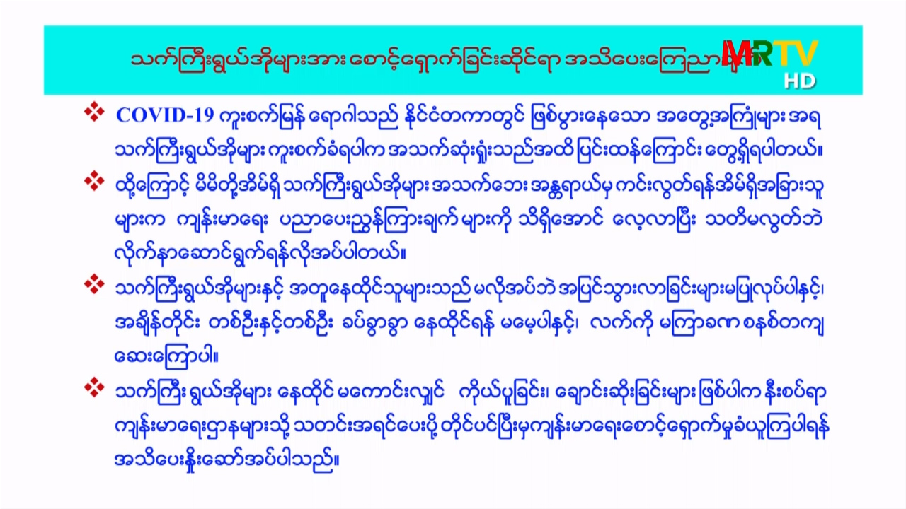 သက်ကြီးရွယ်အိုများအား စောင့်ရှောက်ခြင်းဆိုင်ရာ အသိပေးကြေညာချက် Saturday, May 23, 2020 Saturday, May 23, 2020