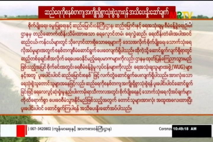 ဆည်ရေကိုစနစ်တကျ အကျိုးရှိစွာသုံးစွဲသွားရန် အသိပေးနှိုးဆော်ချက် Wednesday, June 03, 2020 Wednesday, June 03, 2020