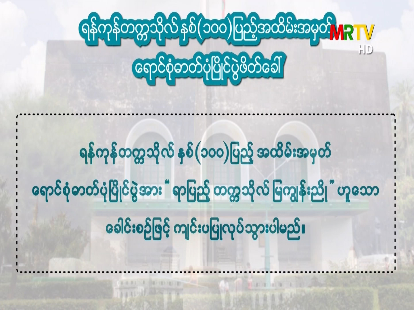 ရန်ကုန်တက္ကသိုလ် နှစ်(၁၀၀)ပြည့်အထိမ်းအမှတ် ရောင်စုံဓါတ်ပုံပြိုင်ပွဲဖိတ်ခေါ်