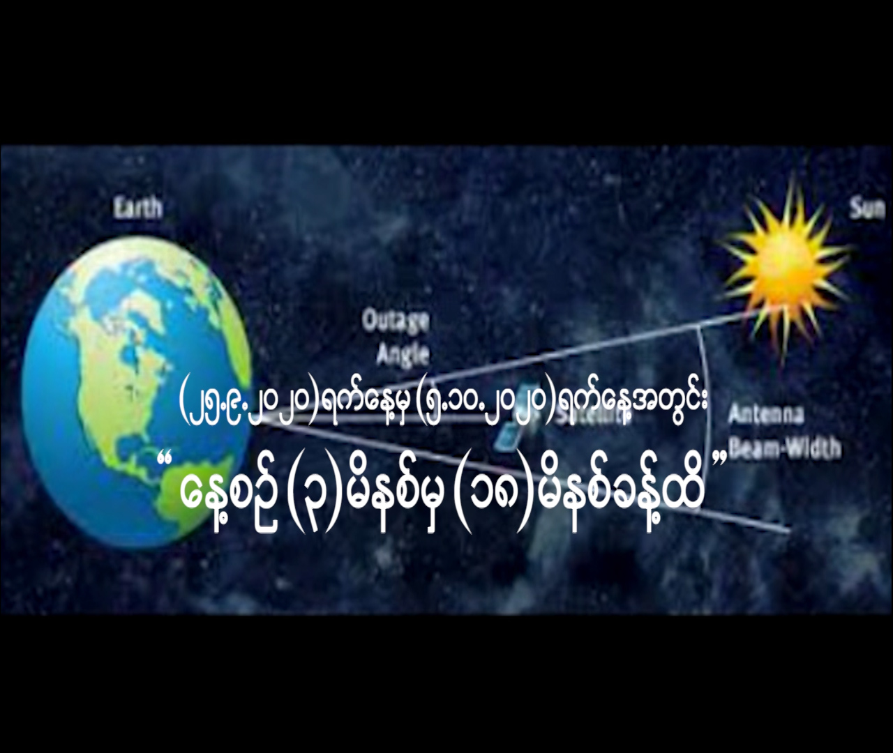 Sun Outage ဖြစ်စဉ်ကြောင့် ရုပ်သံထုတ်လွှင့်မှုများ (၃)မိနစ်မှ (၁၈)မိနစ်ခန့်အထိ ပြတ်တောက်မည့် အခြေအနေ အသိပေးတင်ပြခြင်း