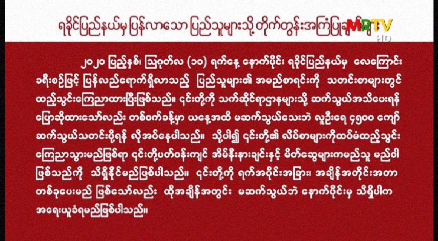 ရခိုင်ပြည်နယ်မှ ပြန်လာသော ပြည်သူများသို့ တိုက်တွန်းအကြံပြုချက်များ Tuesday, September 08, 2020 Tuesday, September 08, 2020