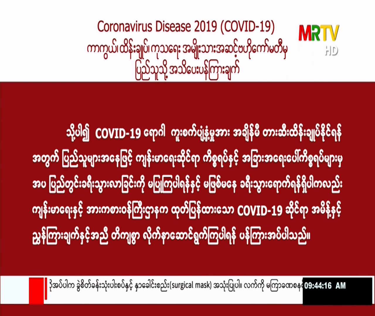 Coronavirus Disease 2019 (COVID-19) ကာကွယ်၊ ထိန်းချုပ်၊ ကုသရေး အမျိုးသားအဆင့် ဗဟိုကော်မတီမှ ပြည်သူသို့ အသိပေးပန်ကြားချက် Friday, September 11, 2020 Friday, September 11, 2020