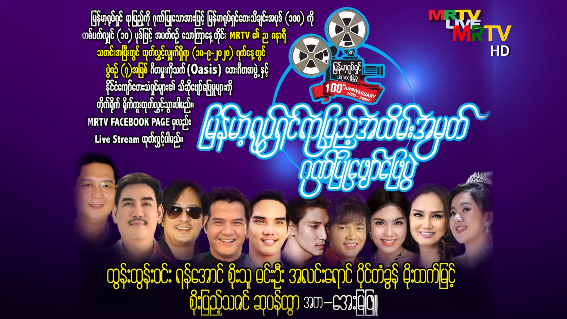 “မြန်မာ့ရုပ်ရှင်ရာပြည့် အထိမ်းအမှတ် ဂုဏ်ပြုဖျော်ဖြေပွဲ” ပွဲစဉ်(၇)ကို စက်တင်ဘာလ (၁၈) ရက်နေ့တွင် မြန်မာ့အသံနှင့် ရုပ်မြင်သံကြား၏ ည (၈) နာရီ သတင်းများအပြီးတွင် ထုတ်လွှင့်ပြသမည် Monday, September 14, 2020 Monday, September 14, 2020