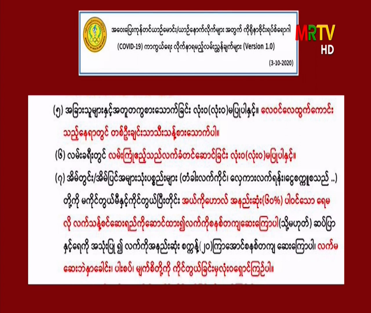 အဝေးပြေးကုန်တင်ယာဉ်မောင်း/ ယာဉ်နောက်လိုက်များအတွက် ကိုရိုနာဗိုင်းရပ်စ်ရောဂါ (COVID-19) ကာကွယ်ရေး လိုက်နာရမည့် လမ်းညွှန်ချက်များ Monday, October 05, 2020 Monday, October 05, 2020