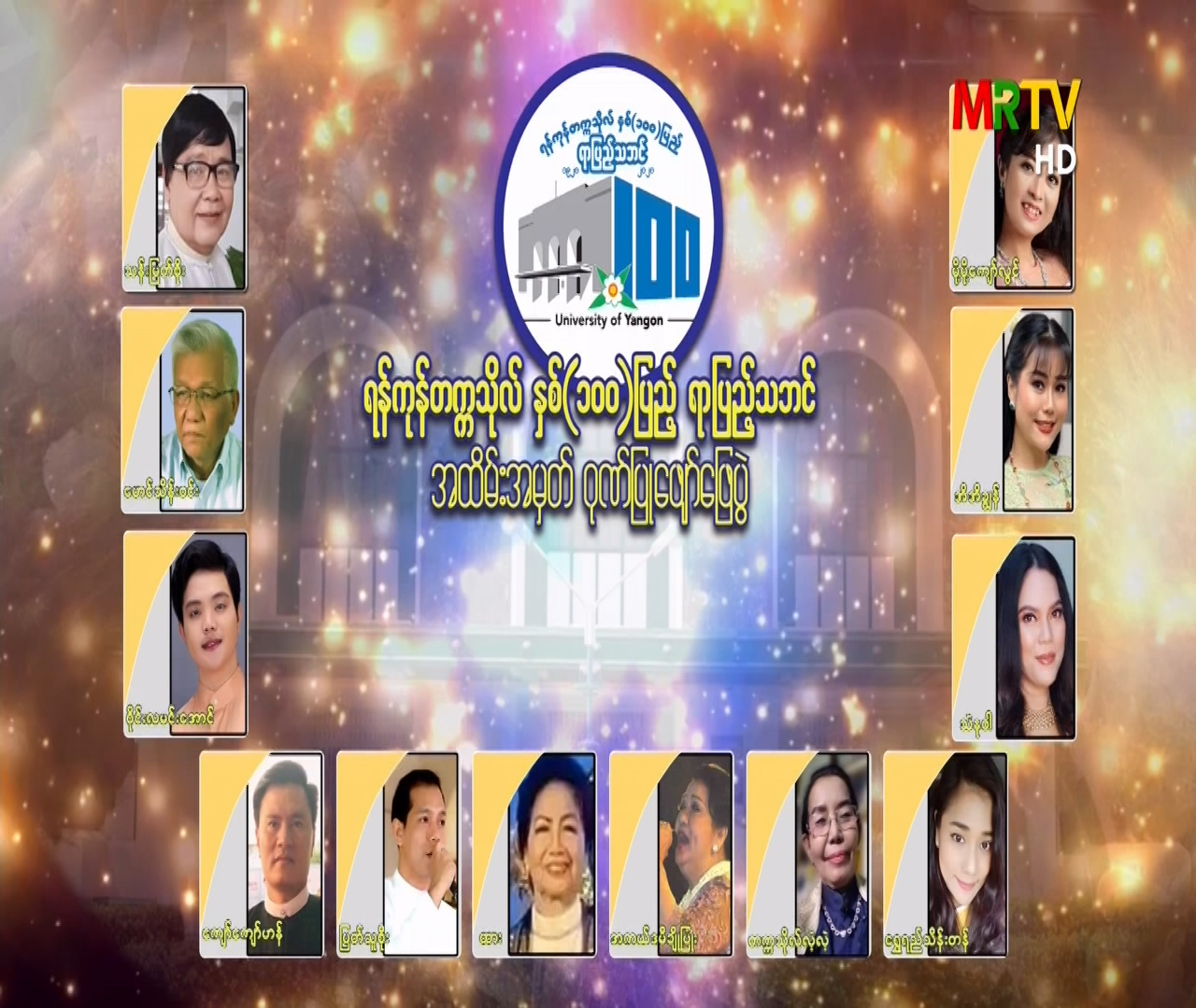 ရန်ကုန်တက္ကသိုလ်နှစ်(၁၀၀)ပြည့် ရာပြည့်သဘင်အထိမ်းအမှတ် ဂုဏ်ပြုဖျော်ဖြေပွဲ Monday, October 19, 2020 Monday, October 19, 2020
