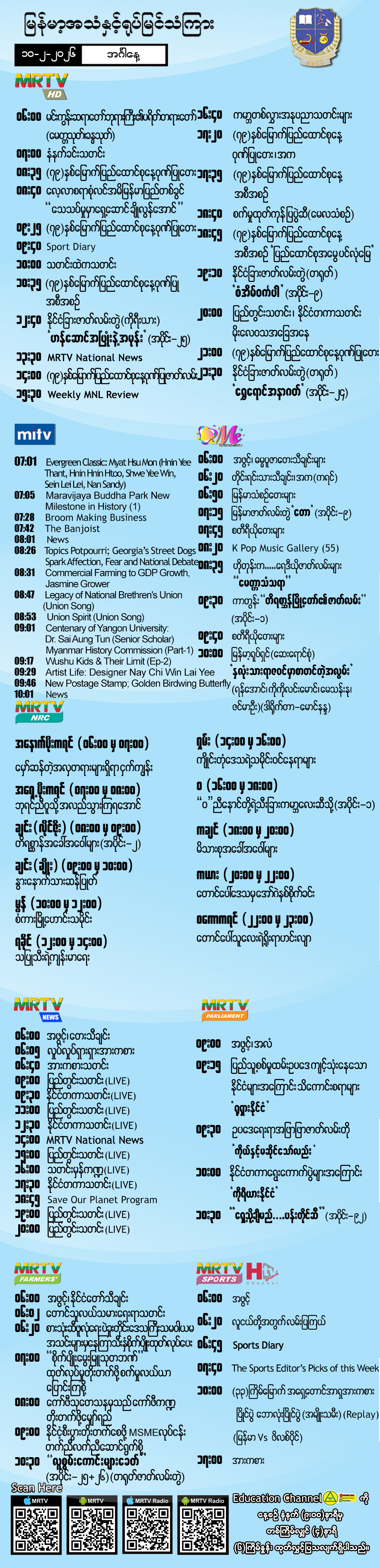 ၁၀-၂-၂၀၂၆ ရက်နေ့တွင် ထုတ်လွှင့်ပြသမည့် အစီအစဉ်များ
