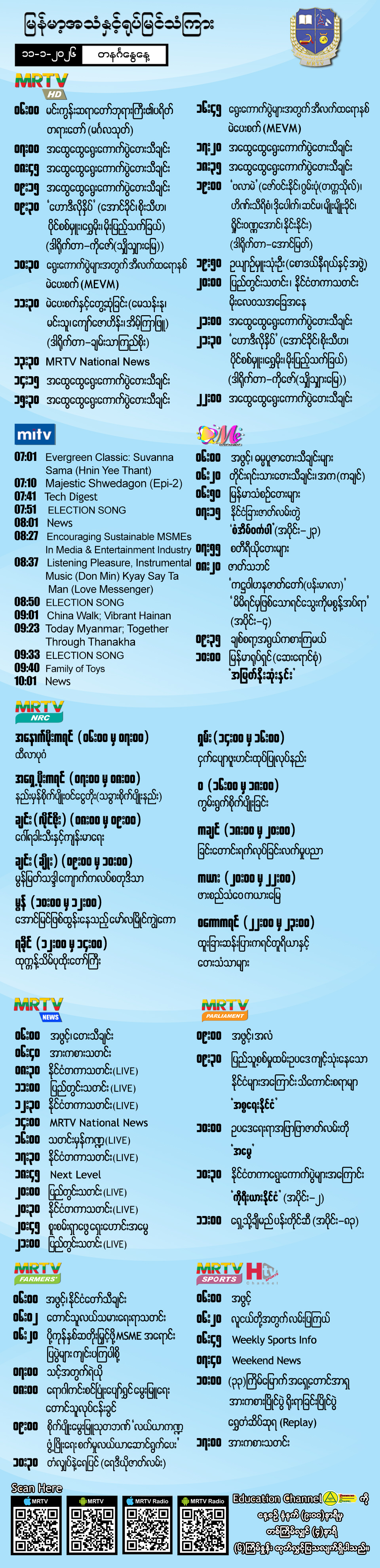 ၁၁-၁-၂၀၂၆ ရက်နေ့တွင် ထုတ်လွှင့်ပြသမည့် အစီအစဉ်များ