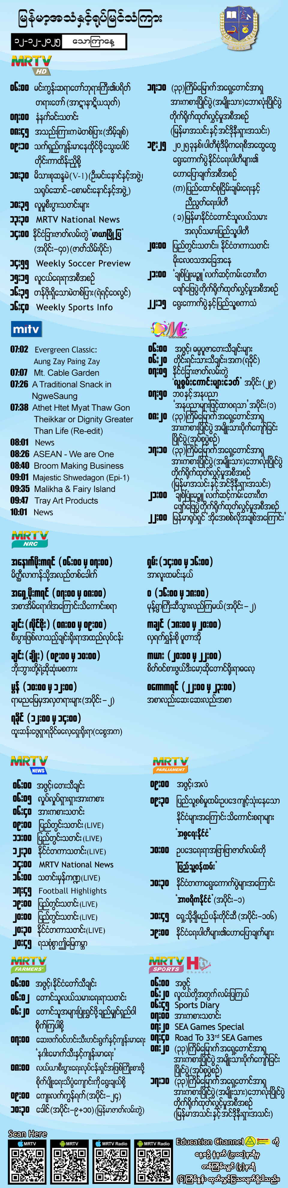 ၁၂-၁၂-၂၀၂၅ ရက်နေ့တွင် ထုတ်လွှင့်ပြသမည့် အစီအစဉ်များ