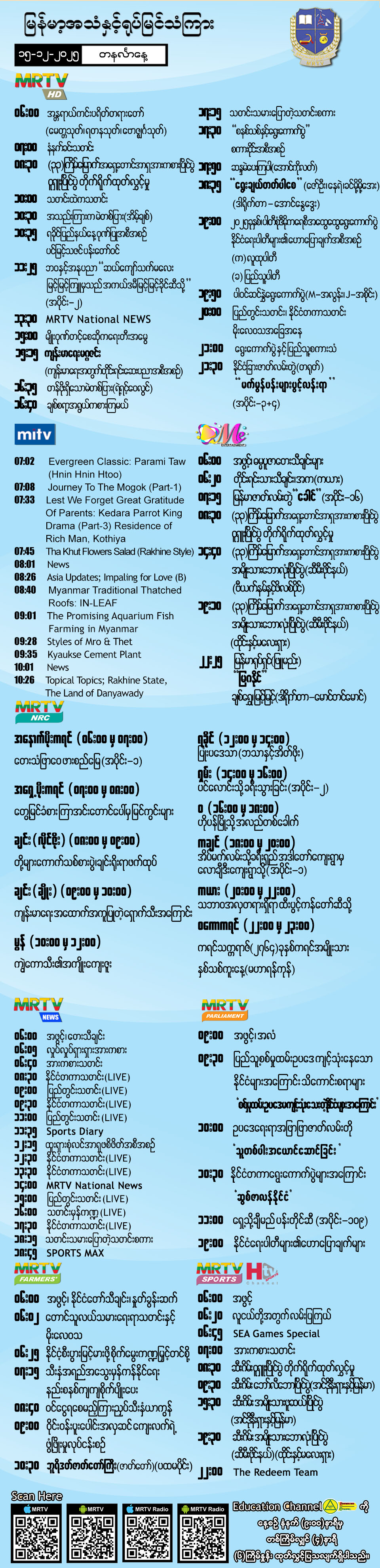 ၁၅-၁၂-၂၀၂၅ ရက်နေ့တွင် ထုတ်လွှင့်ပြသမည့် အစီအစဉ်များ
