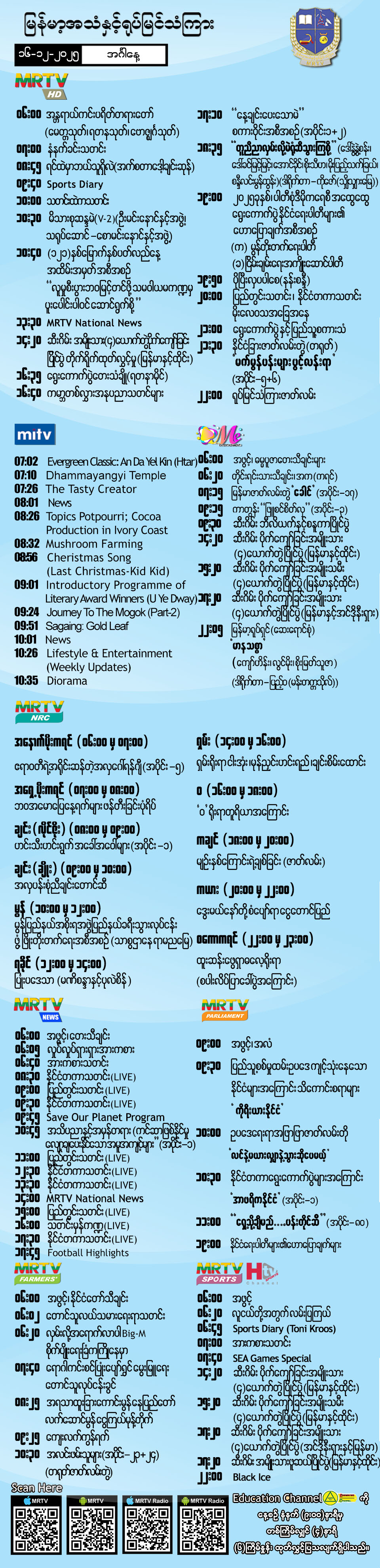 ၁၆-၁၂-၂၀၂၅ ရက်နေ့တွင် ထုတ်လွှင့်ပြသမည့် အစီအစဉ်များ