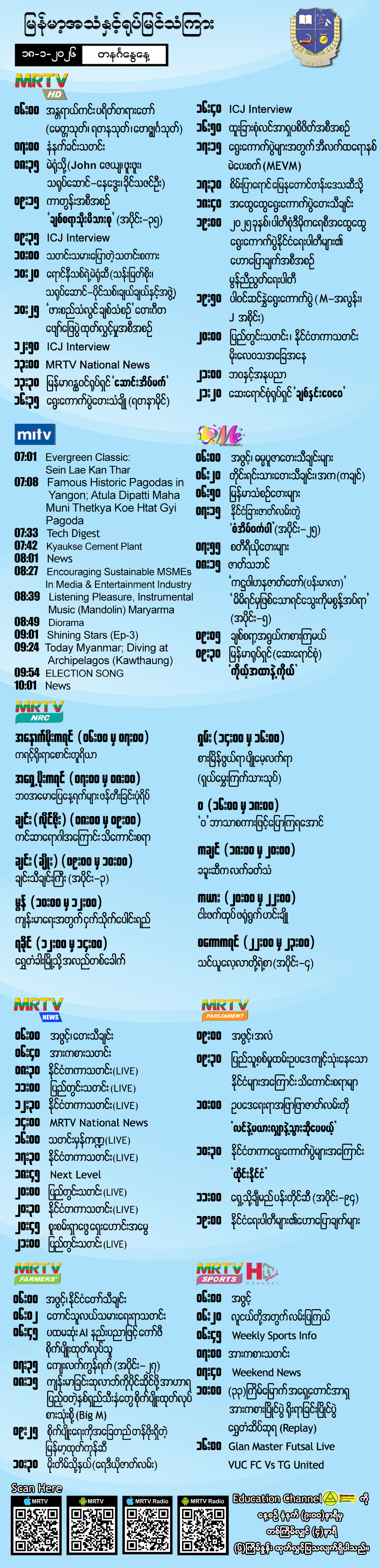 ၁၈-၁-၂၀၂၆ ရက်နေ့တွင် ထုတ်လွှင့်ပြသမည့် အစီအစဉ်များ