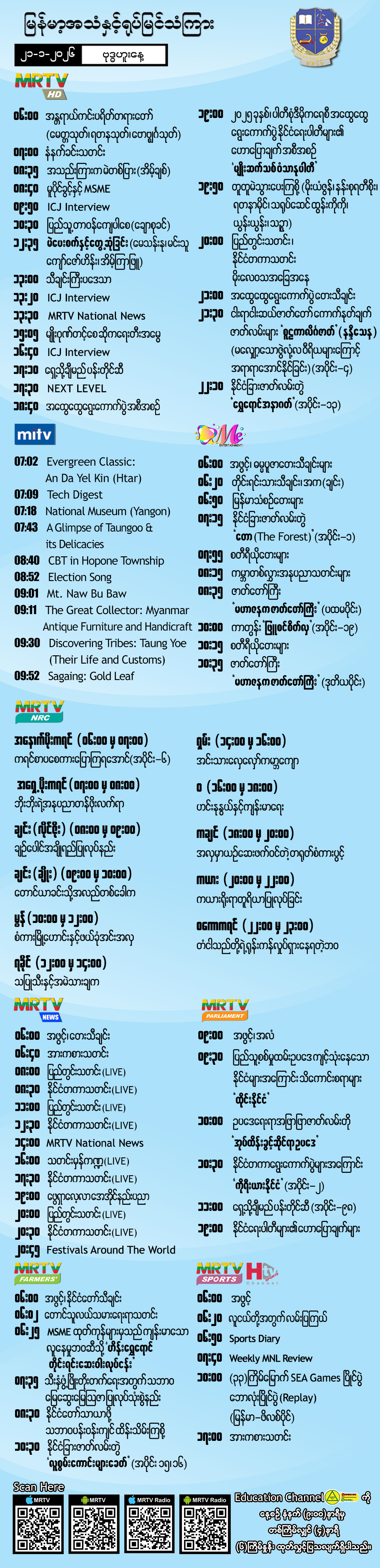 Hluttaw Channel Schedule
