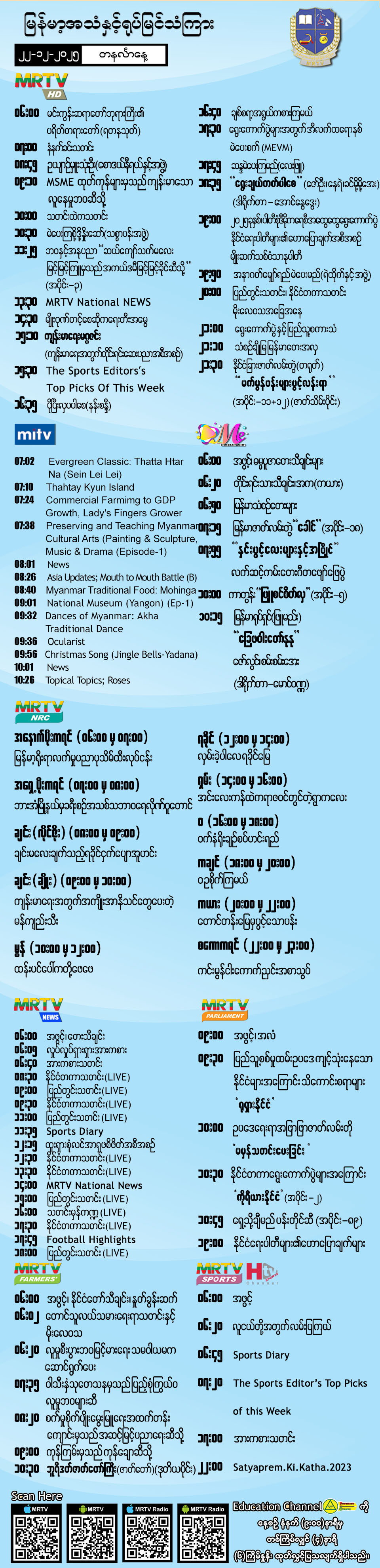 ၂၂-၁၂-၂၀၂၅ ရက်နေ့တွင် ထုတ်လွှင့်ပြသမည့် အစီအစဉ်များ
