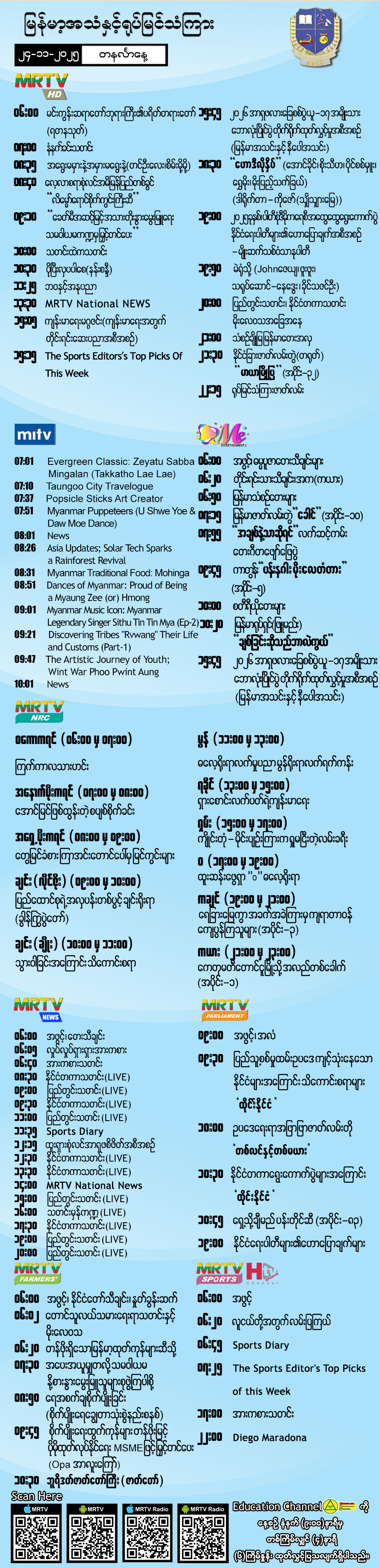 ၂၄-၁၁-၂၀၂၅ ရက်နေ့တွင် ထုတ်လွှင့်ပြသမည့် အစီအစဉ်များ