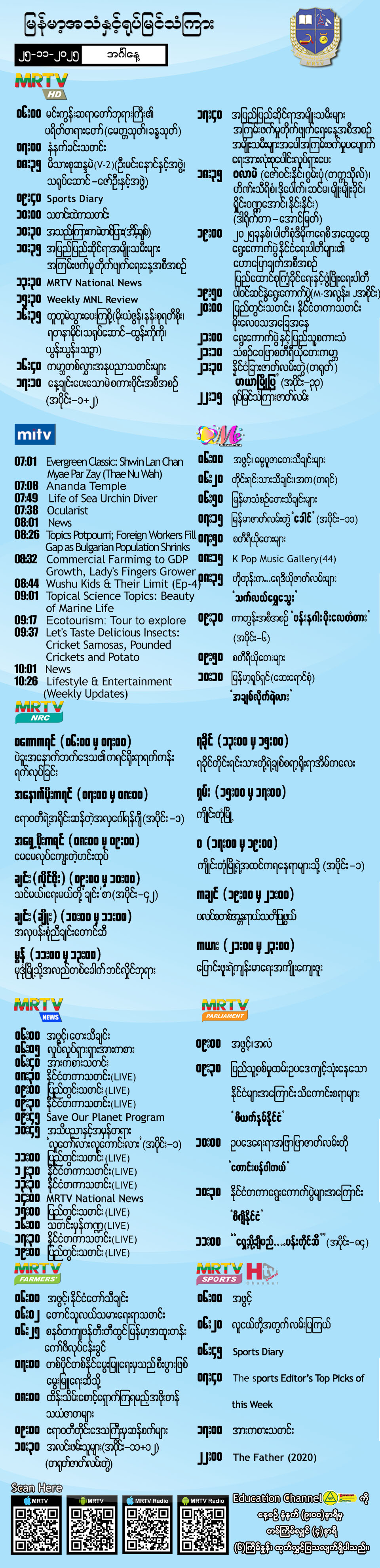 ၂၅-၁၁-၂၀၂၅ ရက်နေ့တွင် ထုတ်လွှင့်ပြသမည့် အစီအစဉ်များ