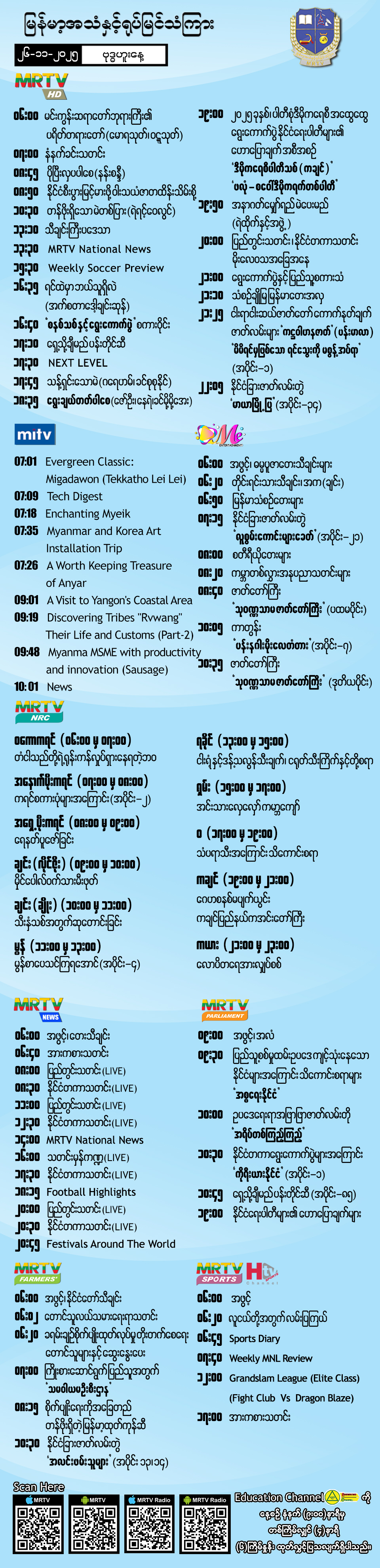 Hluttaw Channel Schedule