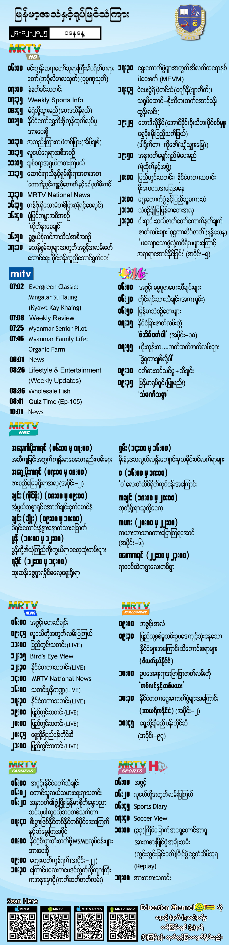 Hluttaw Channel Schedule