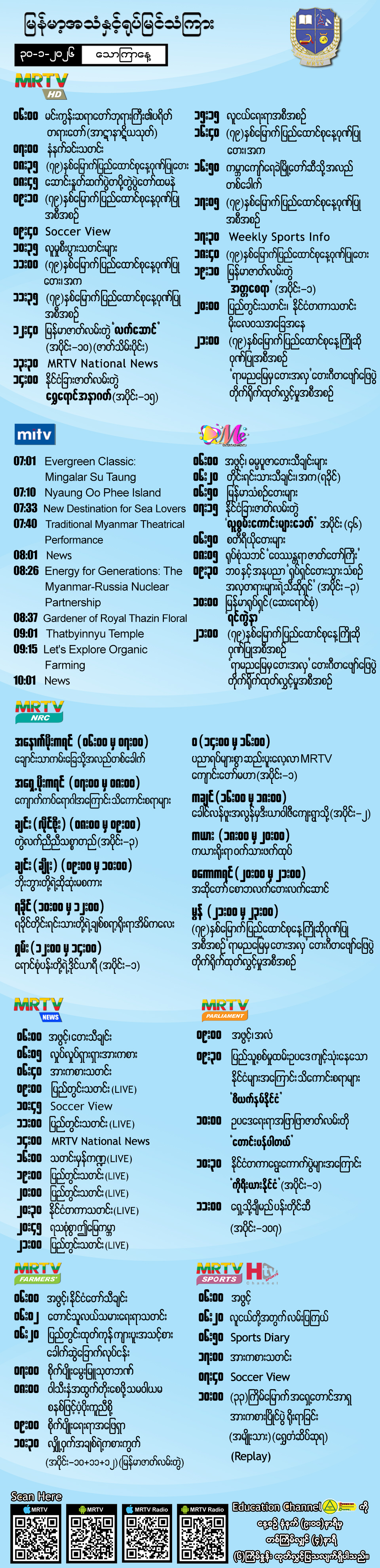၃၀-၁-၂၀၂၆ ရက်နေ့တွင် ထုတ်လွှင့်ပြသမည့် အစီအစဉ်များ