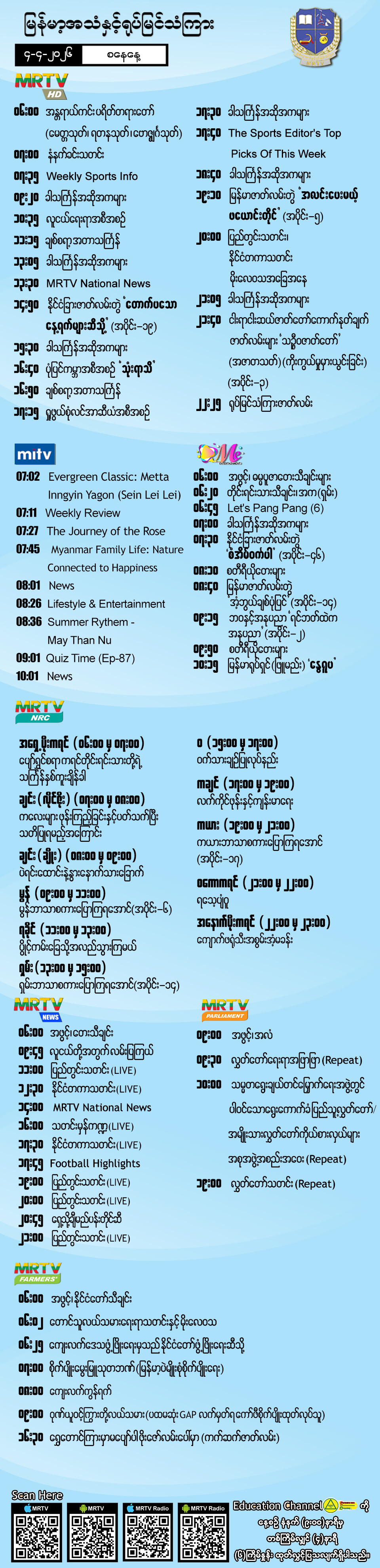 Hluttaw Channel Schedule
