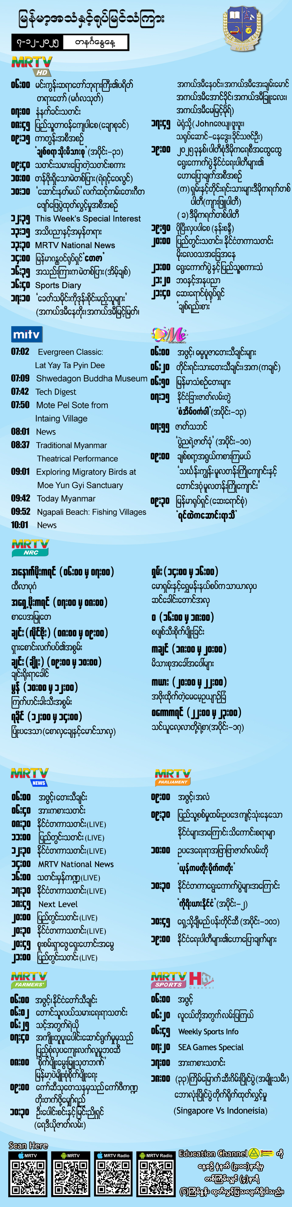 ၇-၁၂-၂၀၂၅ ရက်နေ့တွင် ထုတ်လွှင့်ပြသမည့် အစီအစဉ်များ