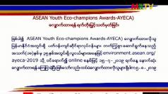 ASEAN Youth Eco-champions Awards-AYECA လျှောက်ထားရန် ရက်တိုးမြှင့်သတ်မှတ်ခြင်း