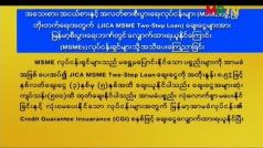 အသေးစား၊ အငယ်စားနှင့် အလတ်စားစီးပွားရေးလုပ်ငန်းများ (MSMs) တိုးတက်ရေးအတွက် (JICA MSME Two Stop Loan) ချေးငွေများအား မြန်မာ့စီးပွားရေးဘဏ်တွင် လျှောက်ထားရယူနိုင်ကြောင်း (MSMEs)လုပ်ငန်းရှင်များသို့အသိပေးခြင်း