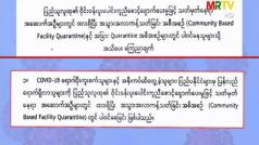 ပြည်သူလူထု၏ ဝိုင်းဝန်းပူးပေါင်းကူညီစောင့်ရှောက်ပေးမှုဖြင့် သတ်မှတ်နေရာ အဆောက်အဦများတွင် ထားရှိပြီး အသွားအလာကန့်သတ်ခြင်း အစီအစဉ် (Community Based Facility Quarantine)နှင့် အခြား Quarantine အစီအစဉ်များတွင် ပါဝင်နေသူများသို့ အသိပေး ကြေညာချက်