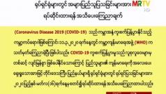 ကိုရိုနာဗိုင်းရပ်စ်ရောဂါ (COVID-19) ကာကွယ်ဖို့ မောင်တို့မယ်တို့လိုက်နာစို့