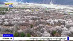 တရုတ်နိုင်ငံအနောက်တောင်ပိုင်း Gutang ကျေးရွာတွင် မက်မွန်ပွင့်များ အပြည့်အဝ ဖူးပွင့်နေ