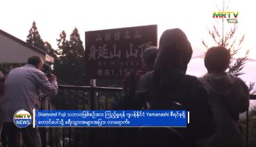 Diamond Fuji သဘာဝဖြစ်စဉ်အား ကြည့်ရူရန် ဂျပန်နိုင်ငံ Yamanashi စီရင်စုရှိ တောင်ပေါ်သို့ ခရီးသွားအများအပြား လာရောက်