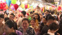 ဗီယက်နမ်နိုင်ငံ၊ ဟိုချီမင်းမြို့ရှိ လမ်းတစ်လျောက်တွင် အရောင်အသွေးစုံ မီးပုံးများကို မြင်တွေ့နေရ