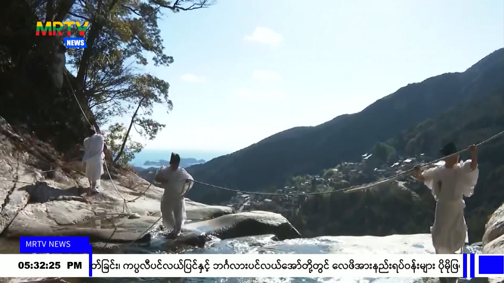 ဂျပန်နိုင်ငံ၊ ရှင်တိုဘုန်းတော်ကြီးများသည် Nachi ရေတံခွန်ပေါ်တွင် ချိတ်ဆွဲထားသော “ရှီမီနာဝါ” ကြိုး တစ်ခုကို နှစ်သစ်မတိုင်မီ အသစ်လဲလှယ်ခဲ့ကြ
