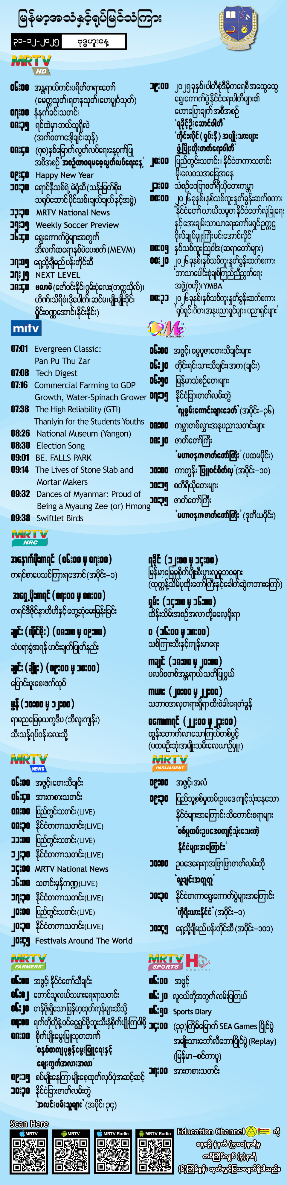 Hluttaw Channel Schedule