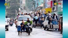 ရခိုင်ပြည်နယ် စစ်တွေမြို့၌ မဟာသင်္ကြန်အကျနေ့တွင် ရေပက်ကစားသူများဖြင့် စည်ကားလျက်ရှိ