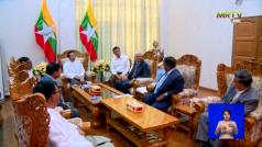 စီးပွားရေးနှင့် ကူးသန်းရောင်းဝယ်ရေး ဝန်ကြီးဌာန၊ ပြည်ထောင်စုဝန်ကြီး ဦးအောင်နိုင်ဦး အိန္ဒိယနိုင်ငံ၊ နယူးဒေလီရှိ တောင်အာရှ နိုင်ငံခြား သတင်းထောက်များအသင်း ၏ ဥက္ကဋ္ဌ Mr. Shirumalla Venkat Narayan ဦးဆောင်သော ကိုယ်စားလှယ်အဖွဲ့အား လက်ခံတွေ့ဆုံ