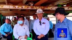 လျှပ်စစ်စွမ်းအားဝန်ကြီးဌာန၊ ပြည်ထောင်စုဝန်ကြီး ဦးသောင်းဟန် မကွေးတိုင်းဒေသကြီး၊ အောင်လံမြို့နယ်၊ ရုံးဆိပ်ကျေးရွာအနီးနှင့် ပဲခူးတိုင်းဒေသကြီး၊ ပန်းတောင်းမြို့နယ်၊ ထုံးဘိုမြို့အနီးရှိ ဧရာဝတီမြစ်၏ ရေအရင်းအမြစ်နှင့် မြစ်ရေလမ်းကြောင်း အခြေအနေတို့အား စစ်ဆေး
