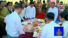 နိုင်ငံတော် စီမံအုပ်ချုပ်ရေးကောင်စီ အဖွဲ့ဝင် ဦးမောင်ကို၊ မန္တလေးတိုင်းဒေသကြီး ဝန်ကြီးချုပ် ဦးမျိုးအောင်၊ တိုင်းမှူး ဗိုလ်ချုပ်ကိုကိုဦး ဆရာတော်၊ သံဃာတော်များအား ဆွမ်း၊ သင်္ကန်း၊ နဝကမ္မဝတ္ထုငွေများ ဆက်ကပ်
