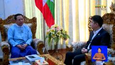 ပြန်ကြားရေး ဝန်ကြီးဌာန ပြည်ထောင်စုဝန်ကြီး ဦးမောင်မောင်အုန်း LAOSAT Company Limited မှ CEO Mr. Wu Fang Jie ဦးဆောင်သည့် ကိုယ်စားလှယ်အဖွဲ့အား တွေ့ဆုံ