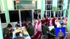 စစ်ကိုင်းတိုင်းဒေသကြီး ဝန်ကြီးချုပ် ဦးမြတ်ကျော် မုံရွာမြို့၊ တိုင်းဒေသကြီးအစိုးရအဖွဲ့ ရုံးဝင်းအတွင်း ချင်းတွင်းခန်းမ၌ ကျင်းပသည့် စူဠဘွဲ့နှင်းသဘင် အခမ်းအနားနှင့် ဆွမ်းဆန် လောင်းလှူပူဇော်ပွဲသို့ တက်ရောက်