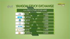 Yangon Stock Exchange စျေးကွက်အခြေအနေ (၄-၄-၂၀၂၃)