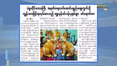 ပဲခူးတိုင်းဒေသကြီး အမှတ်တရလက်ဆောင်ပစ္စည်းဈေးကွက်သို့ ကျွန်းသားဖြင့်ထုလုပ်ထားသည့် ရွှေယုန်မင်းပန်းပုရုပ်များ ဝင်ရောက်လာ