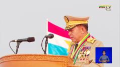 နိုင်ငံတော် စီမံအုပ်ချုပ်ရေးကောင်စီ ဥက္ကဋ္ဌ တပ်မတော်ကာကွယ်ရေးဦးစီးချုပ် ဗိုလ်ချုပ်မှူးကြီး သတိုးမဟာသရေစည်သူ သတိုးသီရိသုဓမ္မ မင်းအောင်လှိုင် ၂၀၂၃ ခုနှစ်၊ (၇၈)နှစ်မြောက် တပ်မတော်နေ့ စစ်ရေးပြအခမ်းအနားသို့ တက်ရောက်မိန့်ခွန်းပြောကြား