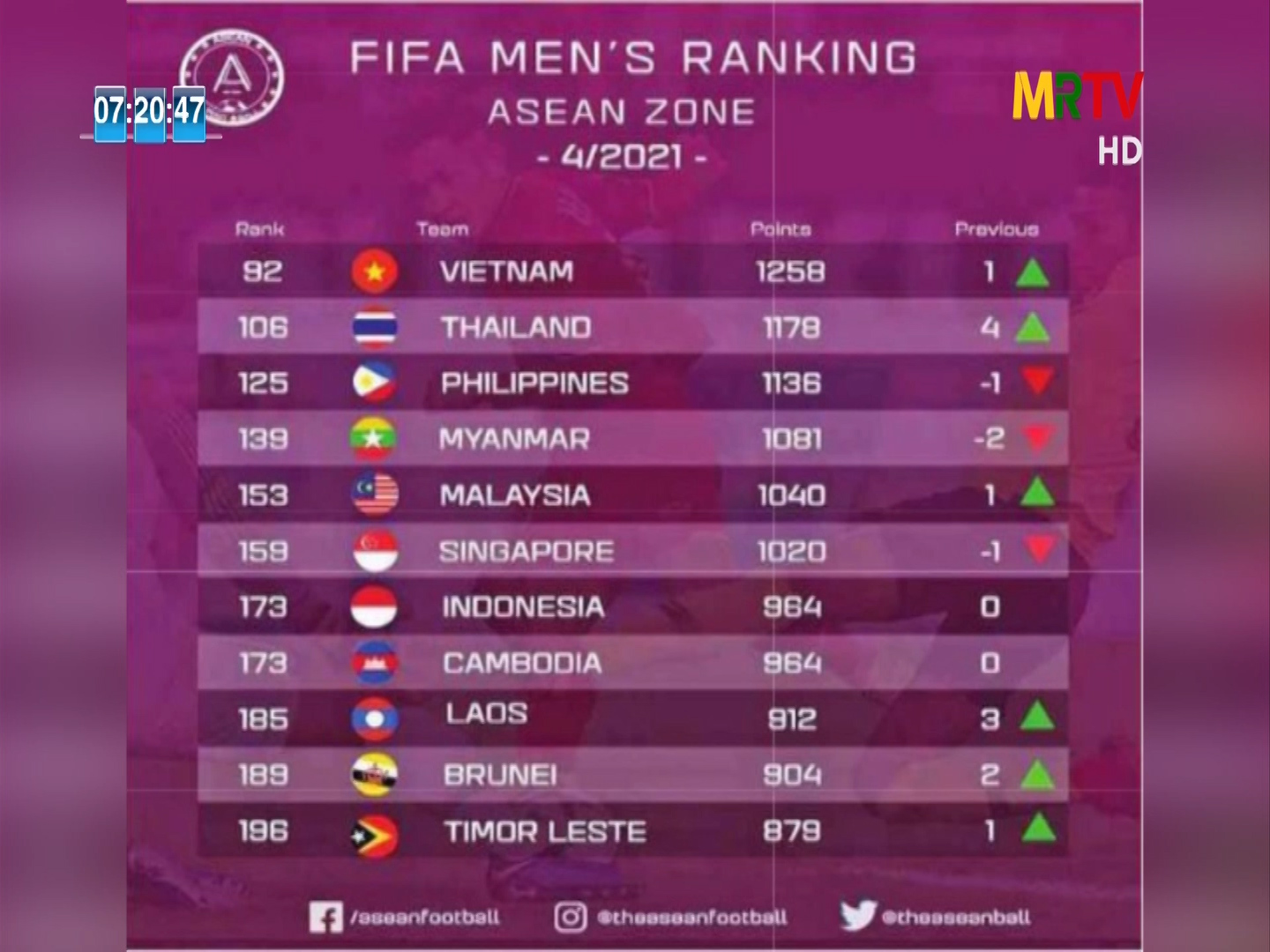 ကမ္ဘာ့ဘောလုံးအဖွဲ့ချုပ် (ဖီဖာ)၏ ဧပြီလသတ်မှတ်ချက်အရ မြန်မာ့လက်ရွေးစင် ဘောလုံးအသင်း အာဆီယံအဆင့်(၄)နှင့် ကမ္ဘာ့အဆင့် (၁၃၉)ရပ်တည် ၊ မြန်မာအမျိူးသမီးအသင်း အာဆီယံအဆင့်(၃)နှင့် ကမ္ဘာ့အဆင့် (၄၄)နေရာတွင် ရပ်တည် တနင်္ဂနွေနေ့, ဧပြီလ 11, 2021 တနင်္ဂနွေနေ့, ဧပြီလ 11, 2021