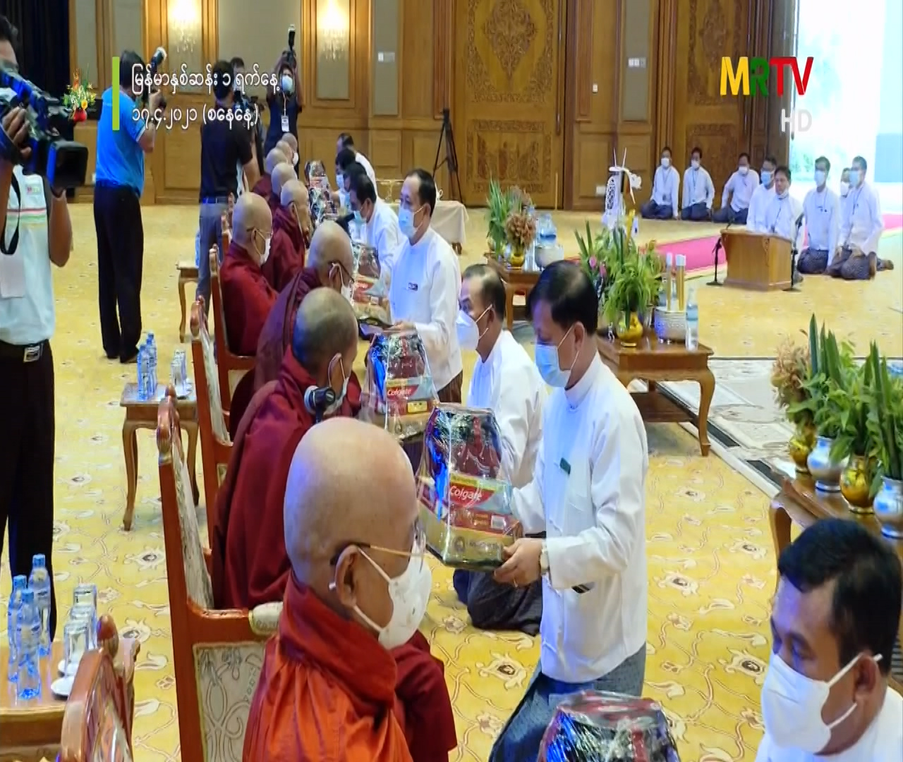 ပြည်ထောင်စုအစိုးရအဖွဲ့ရုံးဝန်ကြီးဌာန နှင့် ပြည်ထဲရေးဝန်ကြီးဌာန၊ ပြည်ထောင်စုဝန်ကြီး ဒုတိယဗိုလ်ချုပ်ကြီးစိုးထွဋ် နိုင်ငံတော်စီမံအုပ်ချုပ်ရေးကောင်စီဥက္ကဋ္ဌရုံးတွင် ကျင်းပသည့် မြန်မာနှစ်သစ်ကူး အန္တရာယ်ကင်း ပရိတ်တရားတော်နာ အခမ်းအနားသို့ တက်ရောက် စနေနေ့, ဧပြီလ 17, 2021 စနေနေ့, ဧပြီလ 17, 2021
