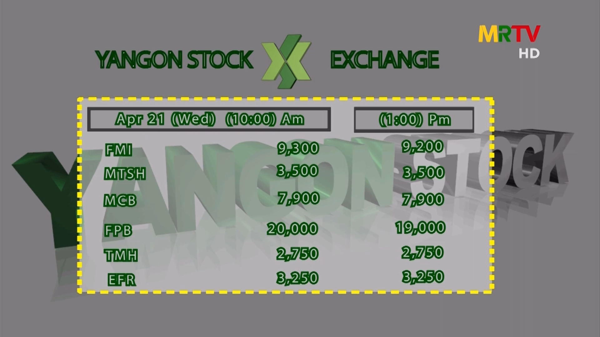 ရန်ကုန်မြို့ Stock Exchange ဈေးကွက်အခြေအနေ (၂၁.၄.၂၀၂၁) ရက်နေ့ ဗုဒ္ဓဟူးနေ့, ဧပြီလ 21, 2021 ဗုဒ္ဓဟူးနေ့, ဧပြီလ 21, 2021