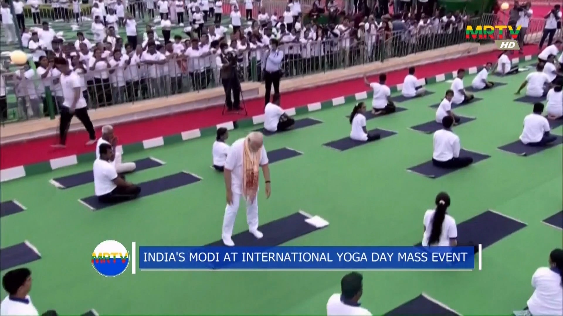 India's Modi at International Yoga Day mass event ဗုဒ္ဓဟူးနေ့, ဇွန်လ 22, 2022 ဗုဒ္ဓဟူးနေ့, ဇွန်လ 22, 2022