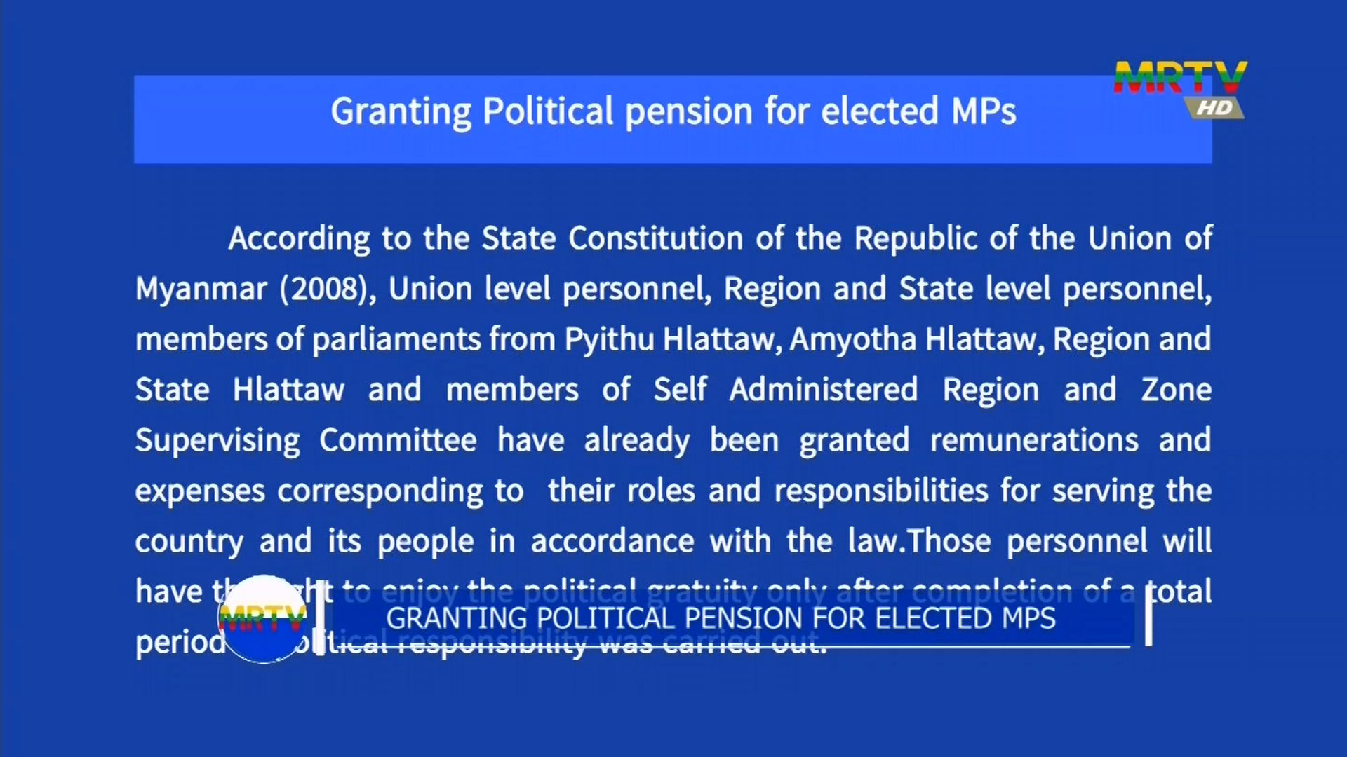 Granting Political pension for elected MPs ဗုဒ္ဓဟူးနေ့, သြဂုတ်လ 17, 2022 ဗုဒ္ဓဟူးနေ့, သြဂုတ်လ 17, 2022