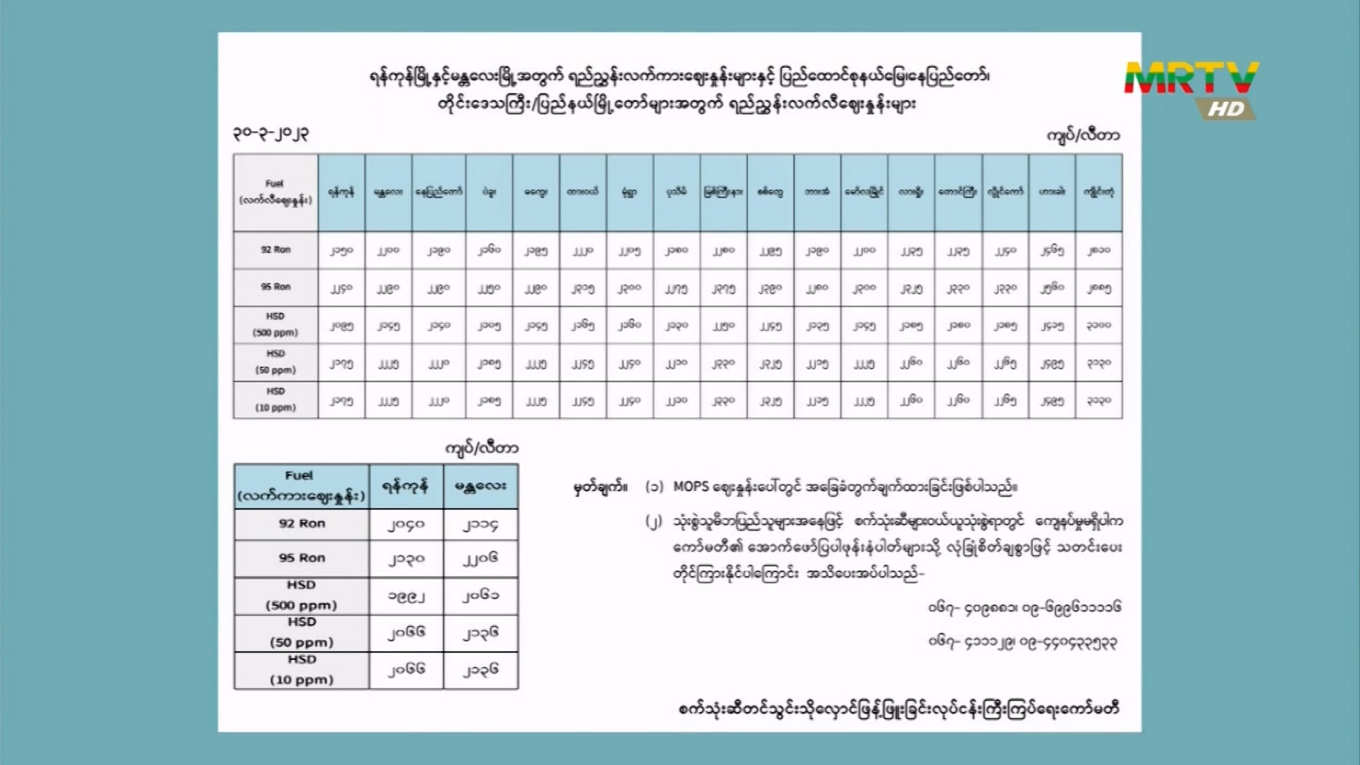 စက်သုံးဆီ တင်သွင်း/သိုလှောင်/ဖြန့်ဖြူးခြင်းလုပ်ငန်းကြီးကြပ်ရေးကော်မတီမှ တိုင်းဒေသကြီးနှင့် ပြည်နယ်အလိုက် စက်သုံးဆီရည်ညွှန်းဈေးနှုန်းများအား မတ်လ ၃၀ ရက်နေ့တွင် ထုတ်ပြန်ကြေညာ ကြာသပတေးနေ့, မတ်လ 30, 2023