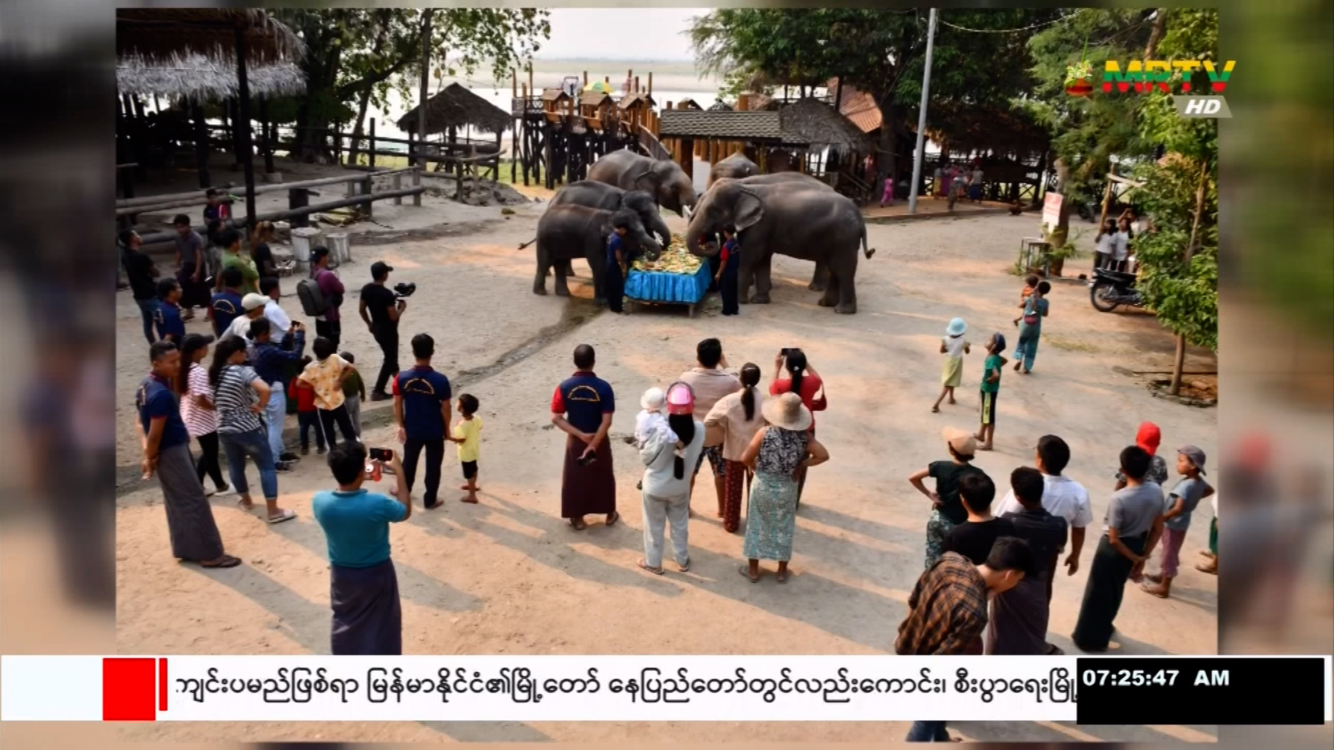 ဧရာဝတီမြစ်ကမ်းဘေးရှိ ပလင်းကမ်းသာယာဆင်စခန်းသို့ သင်္ကြန်ကာလရုံးပိတ်ရက်များတွင် ခရီးသွားဆင်ချစ်သူများ ဝင်ရောက် လည်ပတ်မှုများပြား ကြာသပတေးနေ့, ဧပြီလ 13, 2023
